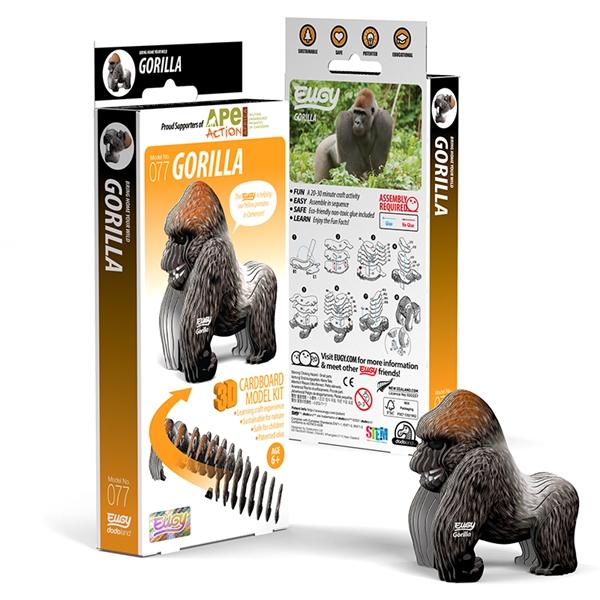 Bygg ditt EUGY-djur genom att foga samman de olika delarna som ingår i paketet. EUGY-figurerna är tillverkade av återvunnet material som är hållbart och komposterbart, med en miljövänlig färg och ett lim som är helt giftfritt. Det tar ungefär 20-30 minuter att färdigställa figuren.